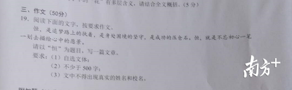 这个作文题有延续2013---2017年广东的作文题目多年来的命题风格,又有创新,虽然延续命题“导语+命题+要求”的结构,创新的是不再是半命题,而是以一个词“恒”字为题写作。
