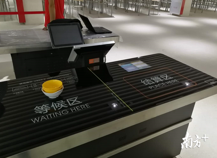 京师励耘不只是教学设施有科技含量,食堂也有“黑科技”。食堂配置的都是底部含芯片的盘碗,打菜阿姨往台上一放就能自动写入价格,学生自选多种饭菜通过闸口时只要往台上一摆就可以自动计价。目前,学生通过智能手环进行支付,抬抬手臂就能实现快速结账,消费信息将会第一时间传到家长手机里,下一步将实现刷脸消费。