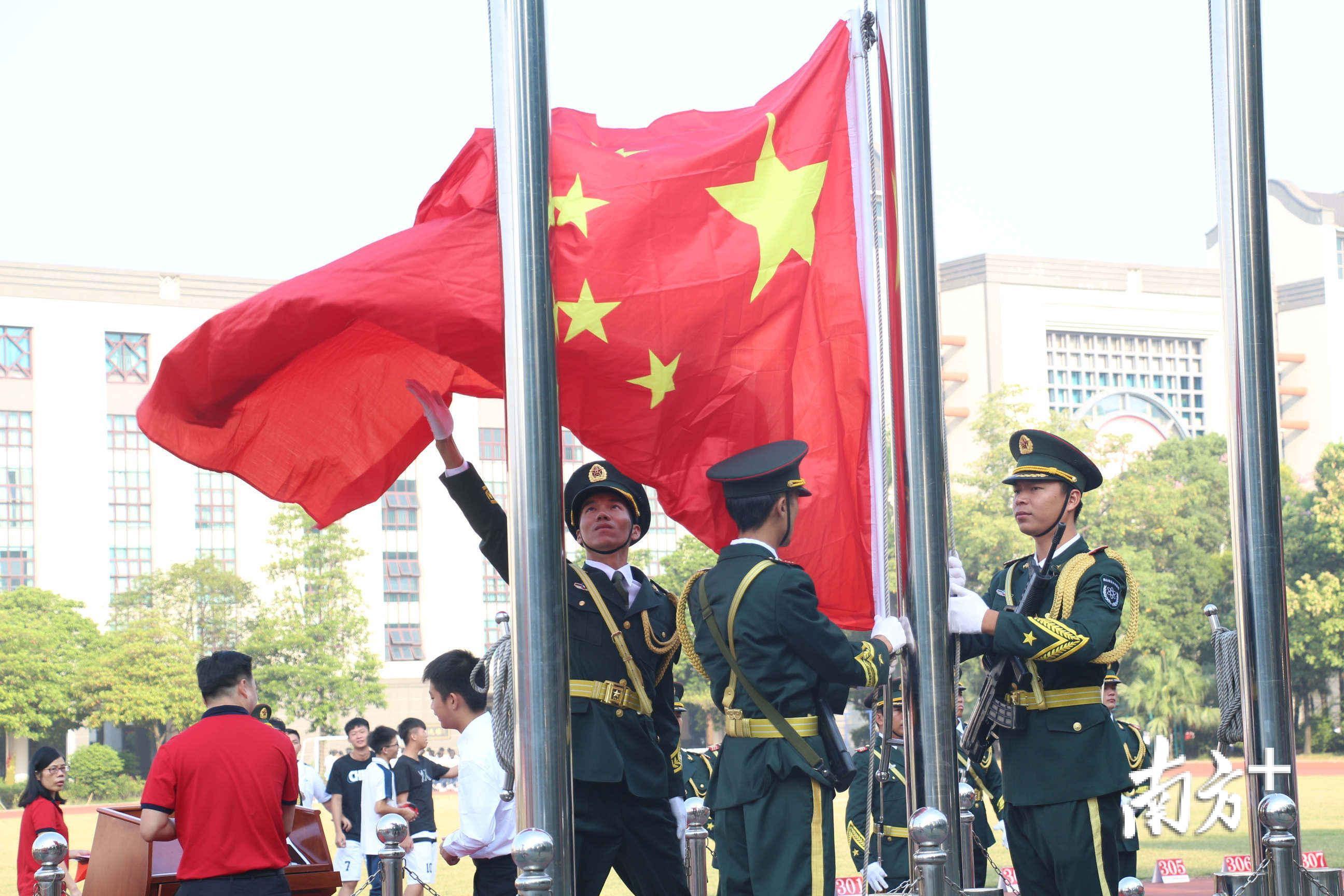 从空中俯望,由学生组成的队列在乐声中迅速排成“70”的字样;在学校音乐老师动人歌声的带动下,全校超3600名师生挥动手中的国旗歌唱《我和我的祖国》……这是9月30日在佛山市南海区桂城中学上演的一幕。