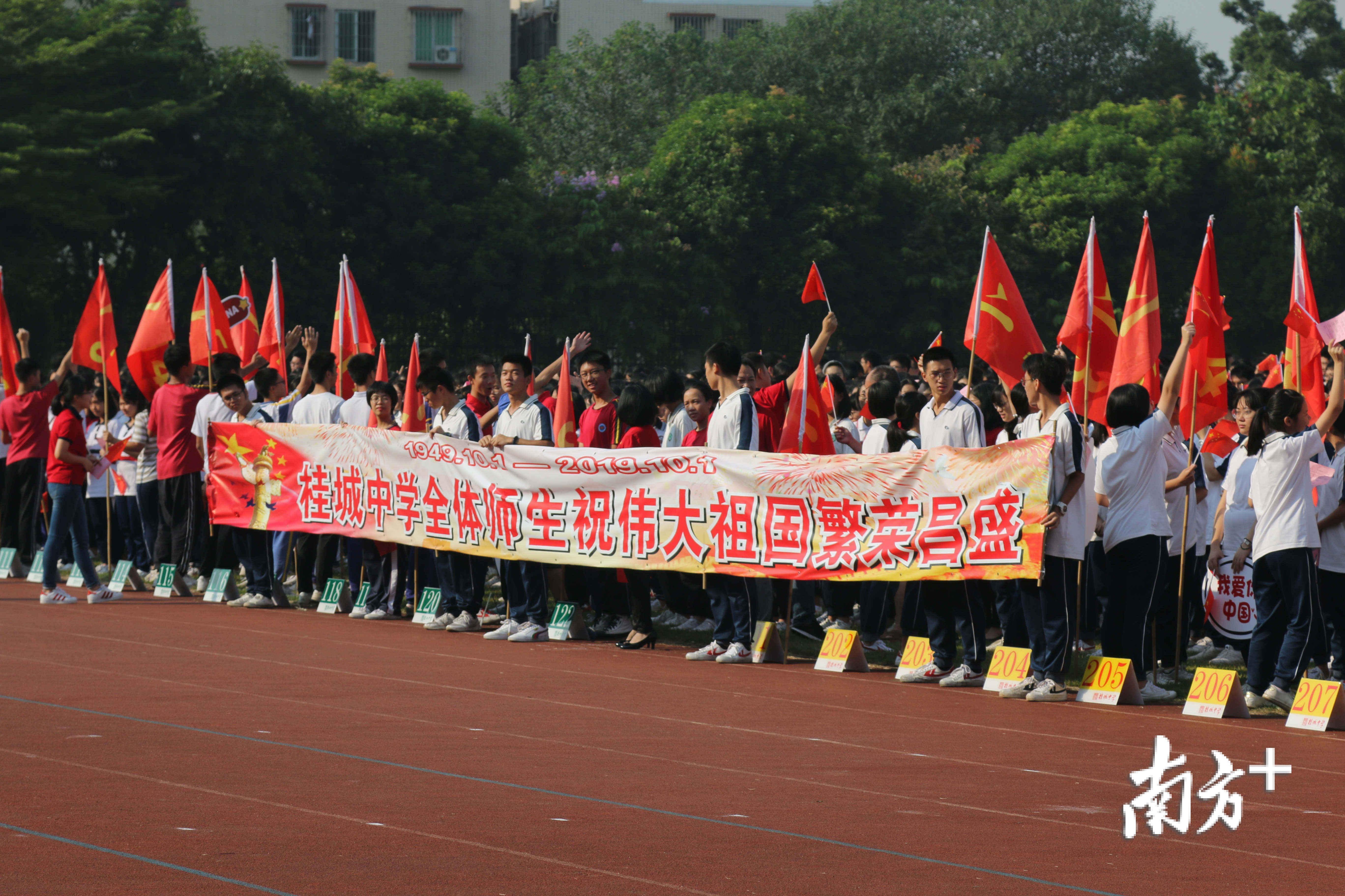 值得一提的是,就在9月28日,桂城中学全体教师、家委会代表等超300人团队从学校出发,手持国旗在南海城区内徒步5公里,以这样特别的方式为祖国庆生。