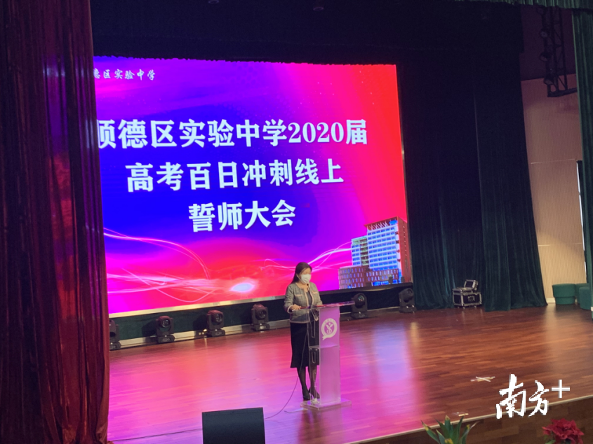 “今天离高考还有100天,隔着屏幕向你们问好、与大家见面,虽非本愿,却也别开生面。”28日,顺德区实验中学534名高三学生体验了一次特别的“云誓师”仪式,该校校长徐东皓在学校礼堂对着镜头为网络另一端的师生们加油喊话。