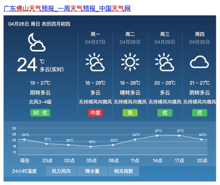 明天(4月27日)多云,18-28℃。天气温暖晴好,但早晚温差较大,请家长为孩子准备薄厚适中的衣物,谨防感冒!