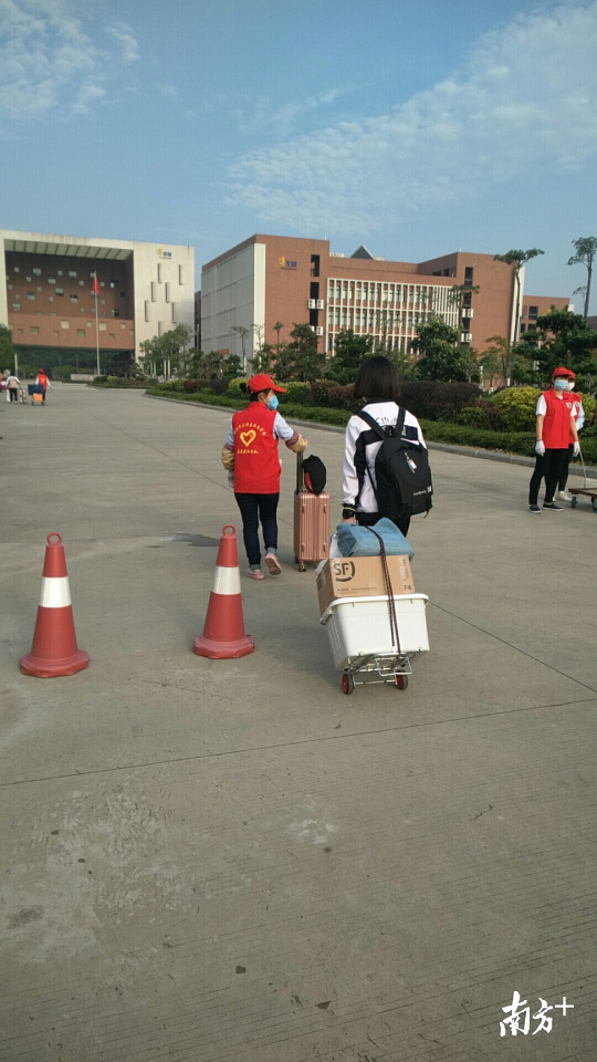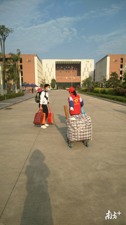#南海#“学校很贴心,校门口有很多志愿者帮忙带行李。”