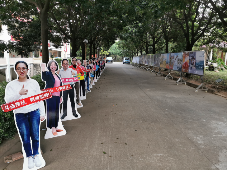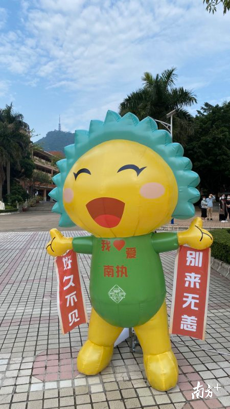 #南海#“居家学习胜利纪念!”“平安返校会师纪念。”南海执信中学准备了多条标语及可爱的公仔,欢迎同学们返校。