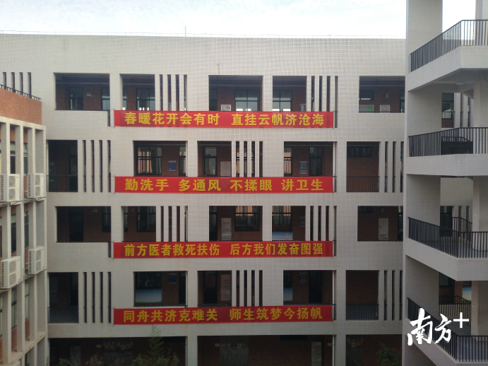 #三水#“春暖花开会有时,直挂云帆济沧海”“勤洗手 多通风 不揉眼 讲卫生”……在西南中学校园内,悬挂多条鼓励横幅,欢迎首批师生返校,做好个人防护,冲刺中考。全校行政和初三全体教师全体上阵,主动帮学生运送行李。