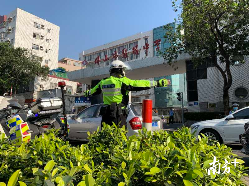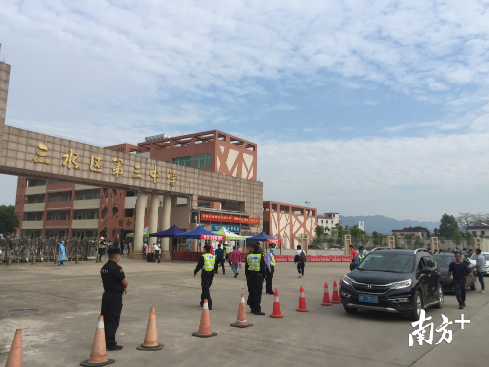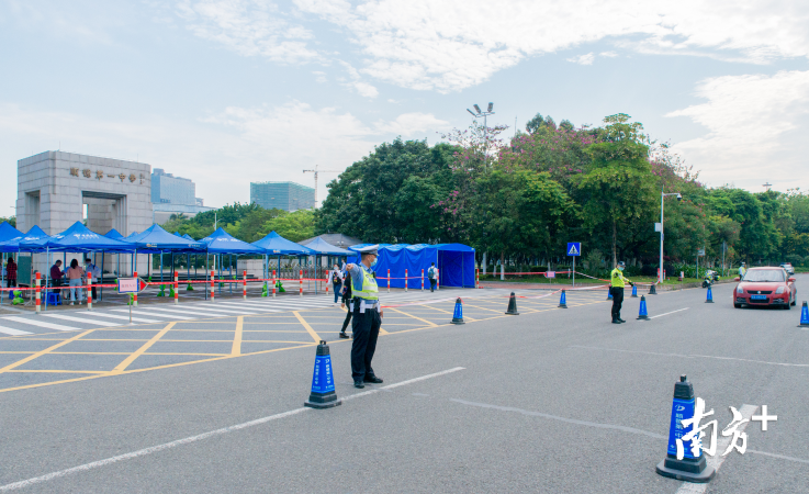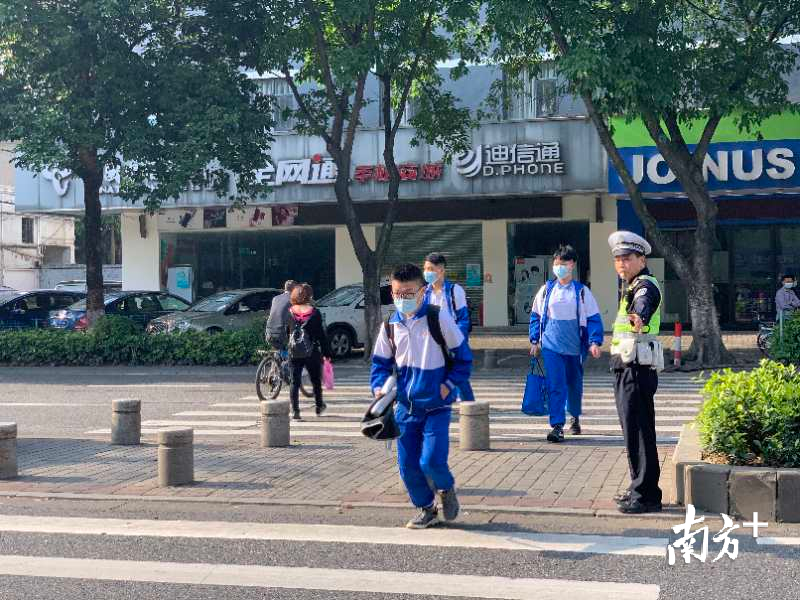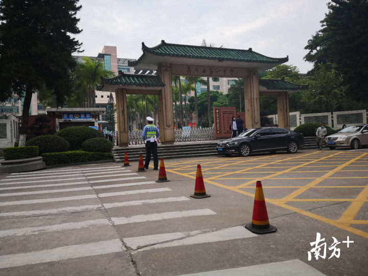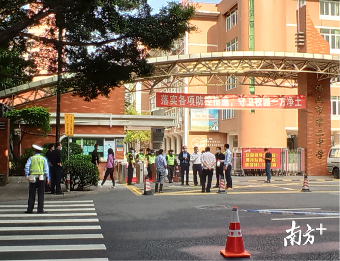#禅城#佛山二中校门口,公安交警在维护秩序。