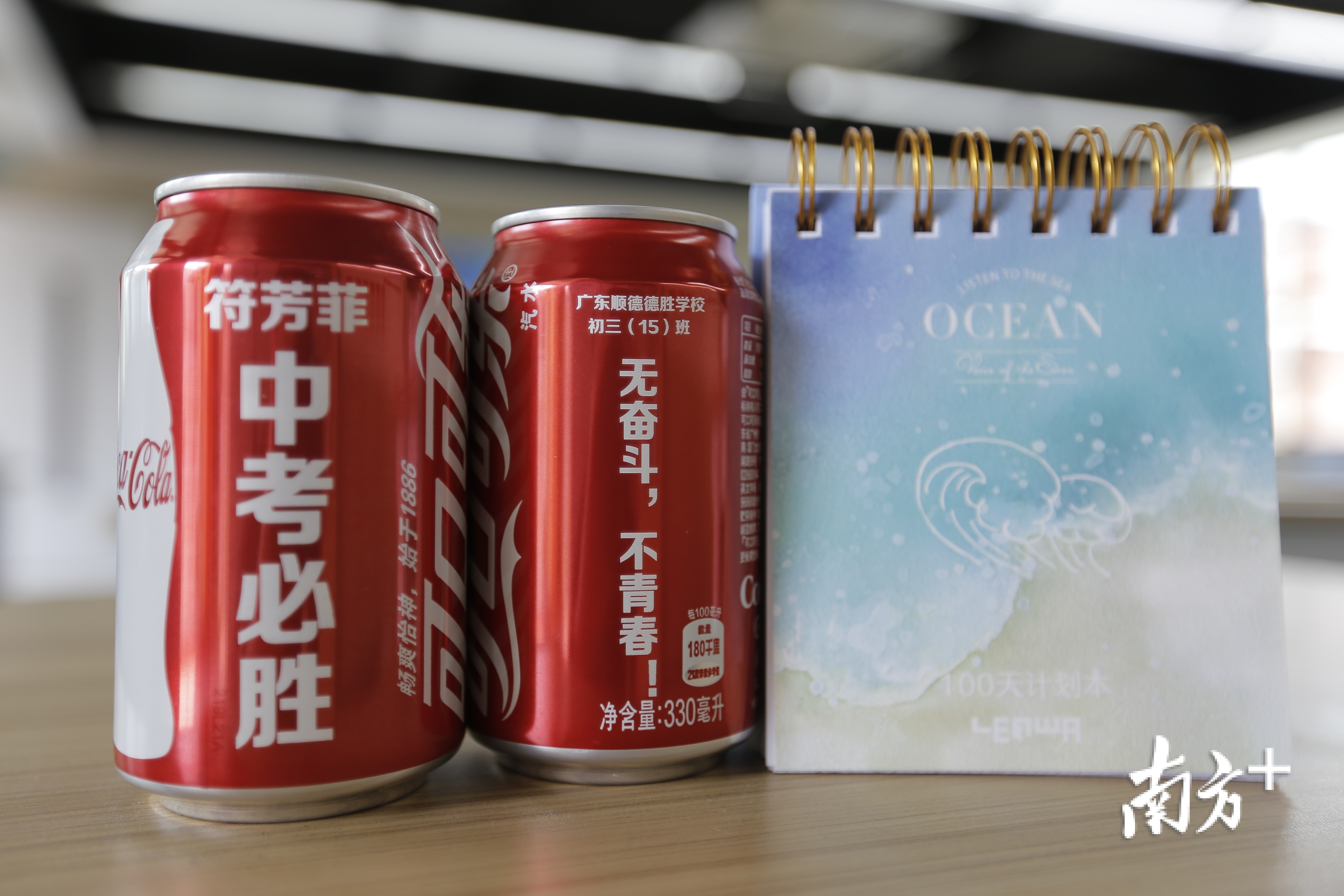 #顺德#在顺德德胜学校,不少初三和高三学子都收到班主任准备的礼物,包括定制可乐、倒计时日历、创意红包等。可乐上有班级冲刺中考的“无奋斗,不青春”等口号和学生名字。创意红包打开则是一句句勉励大家的“金句”。