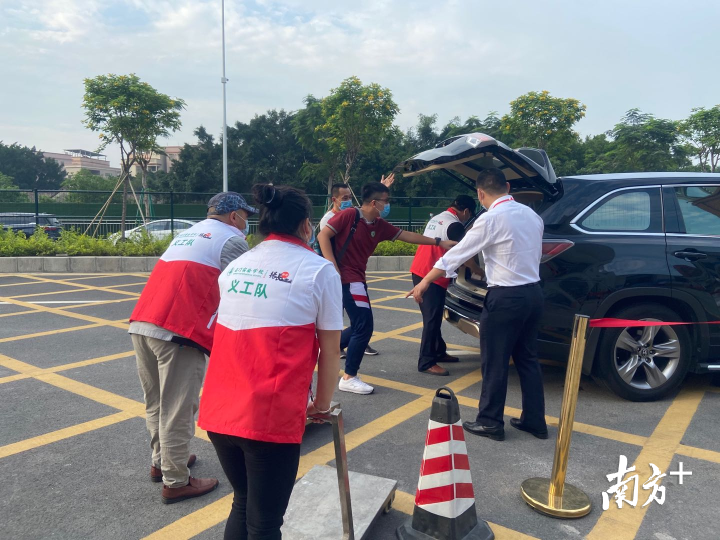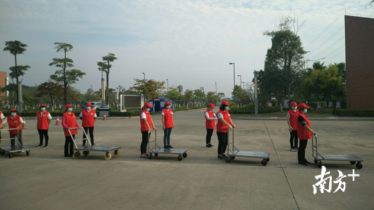 #顺德#李兆基中学学生义工正在为返校学生搬运行李。