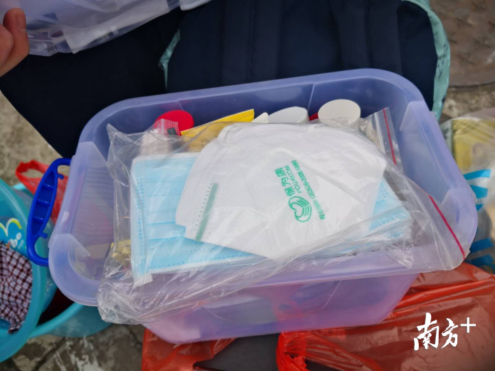 廖先生一早就送儿子来到校门口,等待学校开门,“怕待会人太多”。除了常规的学习生活用品外,他还给儿子准备了10多个口罩和一些药品。廖同学说,在家里复习效果一般,很希望回学校,“学校的氛围更好”。