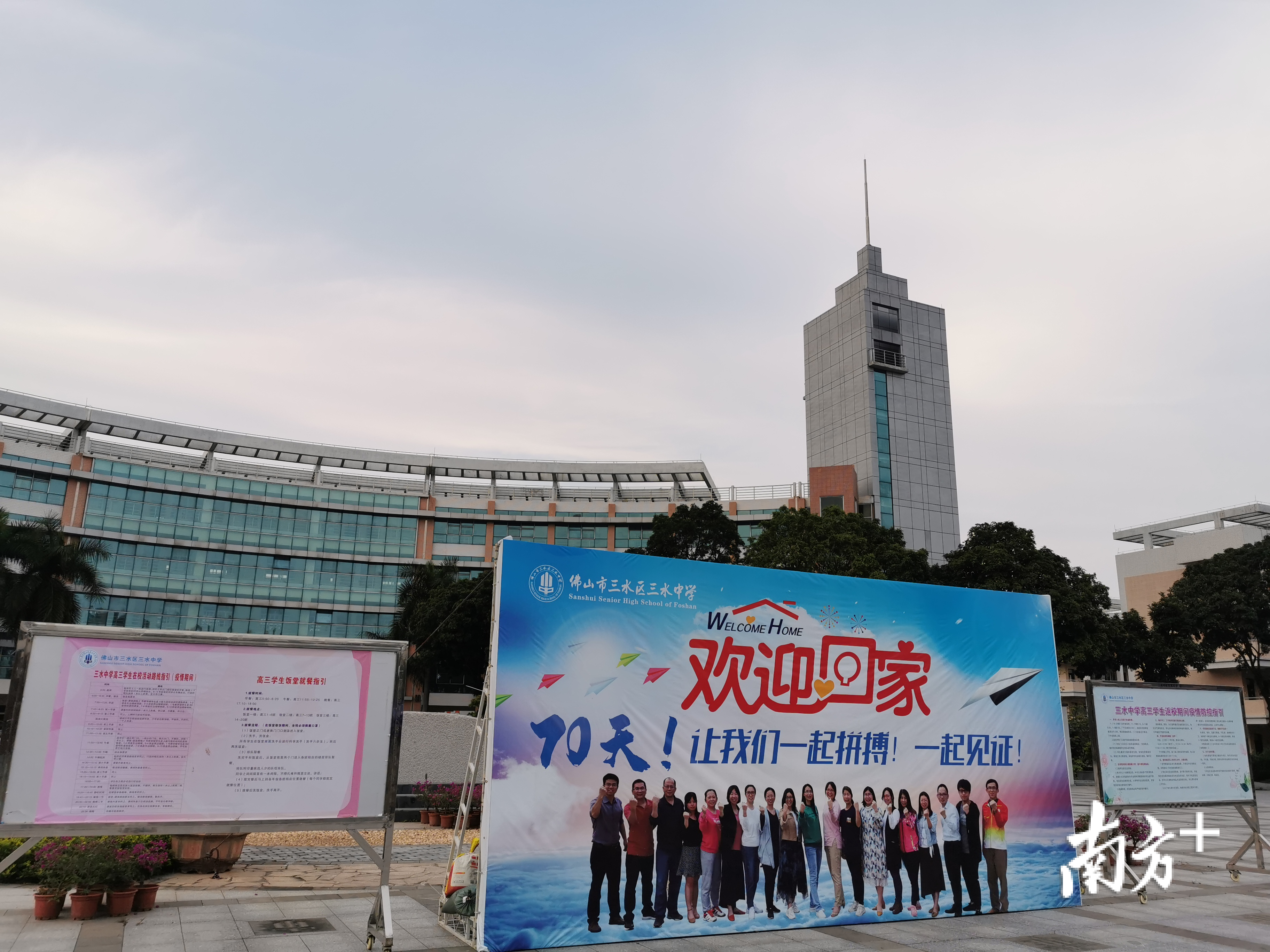 #三水#“欢迎回家!”今天,三水中学近千名高三学生多批次多通道返校,全体高三老师回校迎接学生。在校门口和走廊上,学校布置了展板和教师的人像板迎接学生返校。老师们组织学生检测体温,提交健康卡,有序入校;为学生分担行李,以抖擞的精神和亲切的笑容给高三学子们温暖和鼓励。