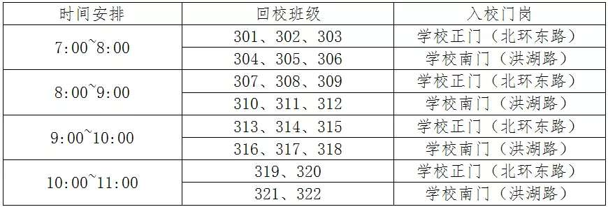 据校方负责人介绍,当天上午学生共分四个批次错峰返校,每隔一个小时一批,每个批次共组织4-6个班依次从学校正门和南门分别进入。