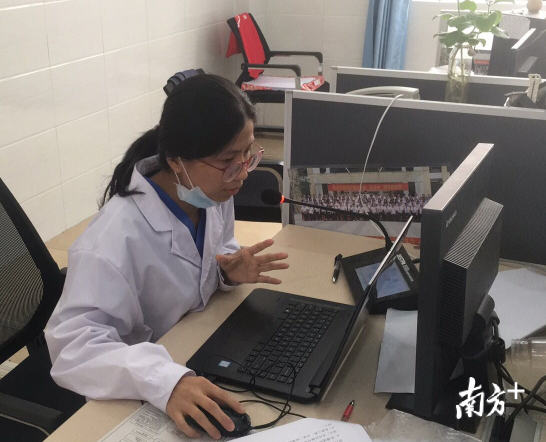 在华附南海实验高中校门口,老师们在给返校的学生发放防疫资料,并叮嘱他们做好防护。