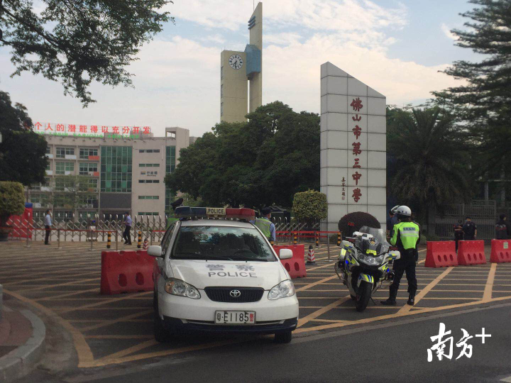 #禅城#一大早,警车在佛山市第三中学门口驻扎,为学子们返校护航。