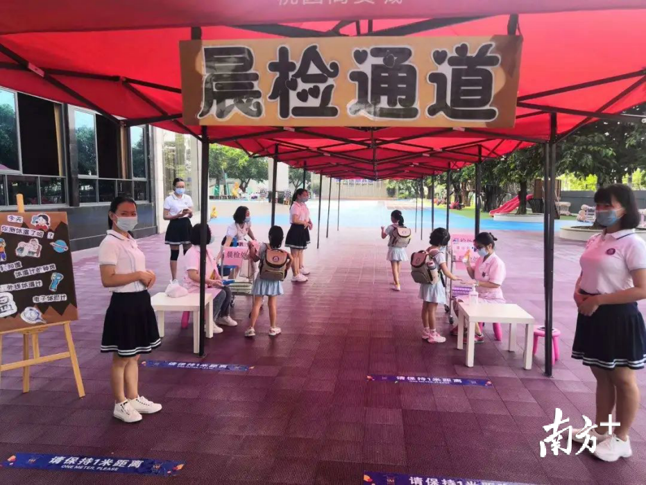 洗手、排队、晨检……6月2日早上,南海区的小朋友们按照各幼儿园规定分时段入园。第一天返园,孩子们背上小书包认真配合老师做好各个环节的检查,脸上露出开心的笑容。一起通过一组图片感受一下首日返园实况——