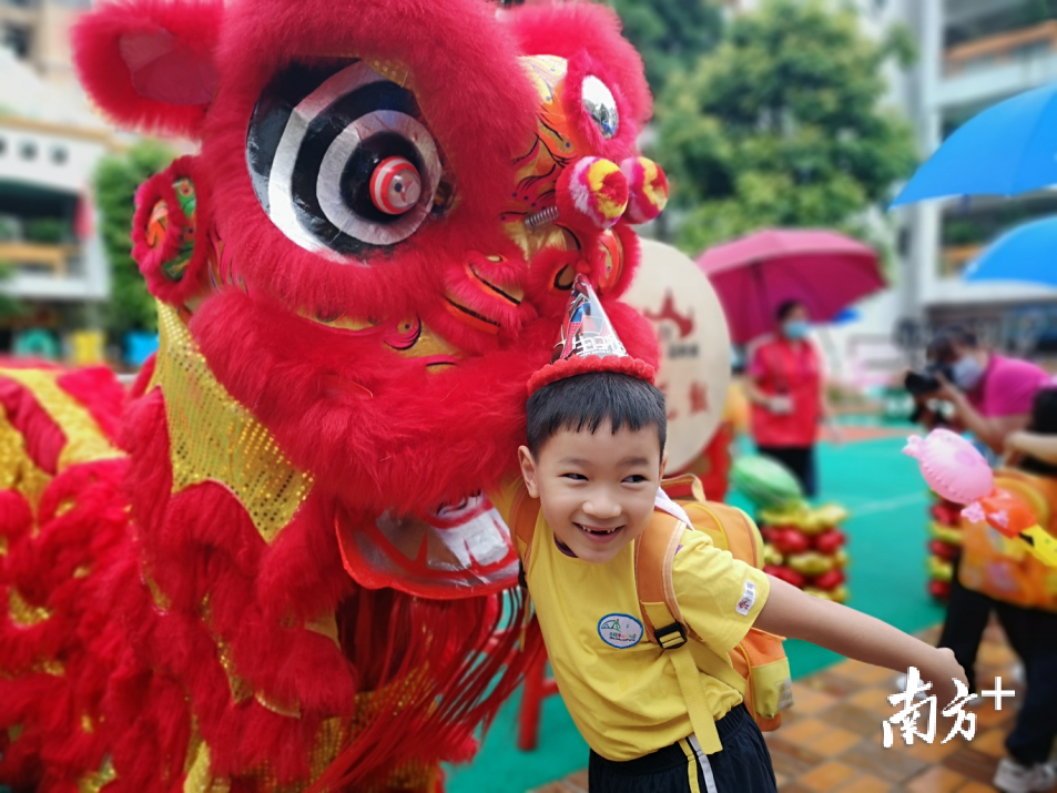 西樵中心幼儿园特别策划了“欢欣鼓舞 快乐回家”的欢迎仪式。仪式上有西樵传统活动舞狮助兴。