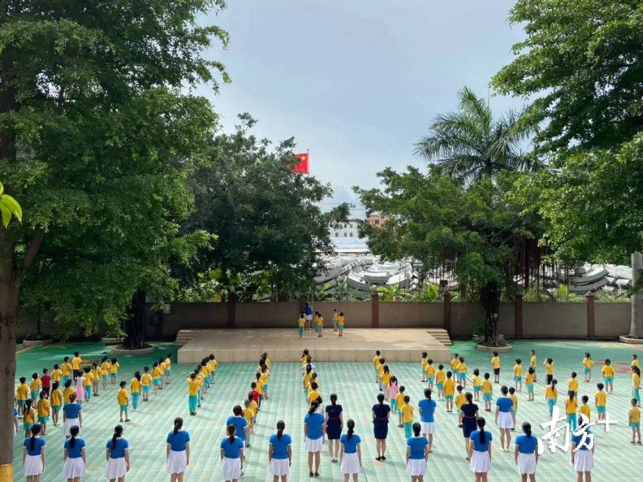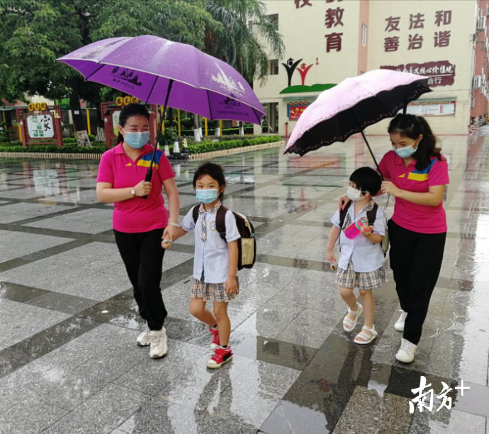 西樵实验幼儿园教师雨中为孩子撑起关爱。
