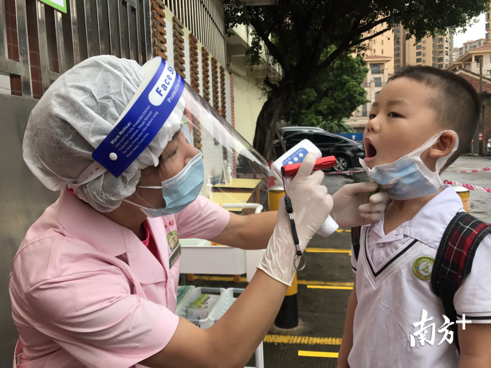 西樵泰和幼儿园的宝贝都在保健医生的关爱下“通关”进园。