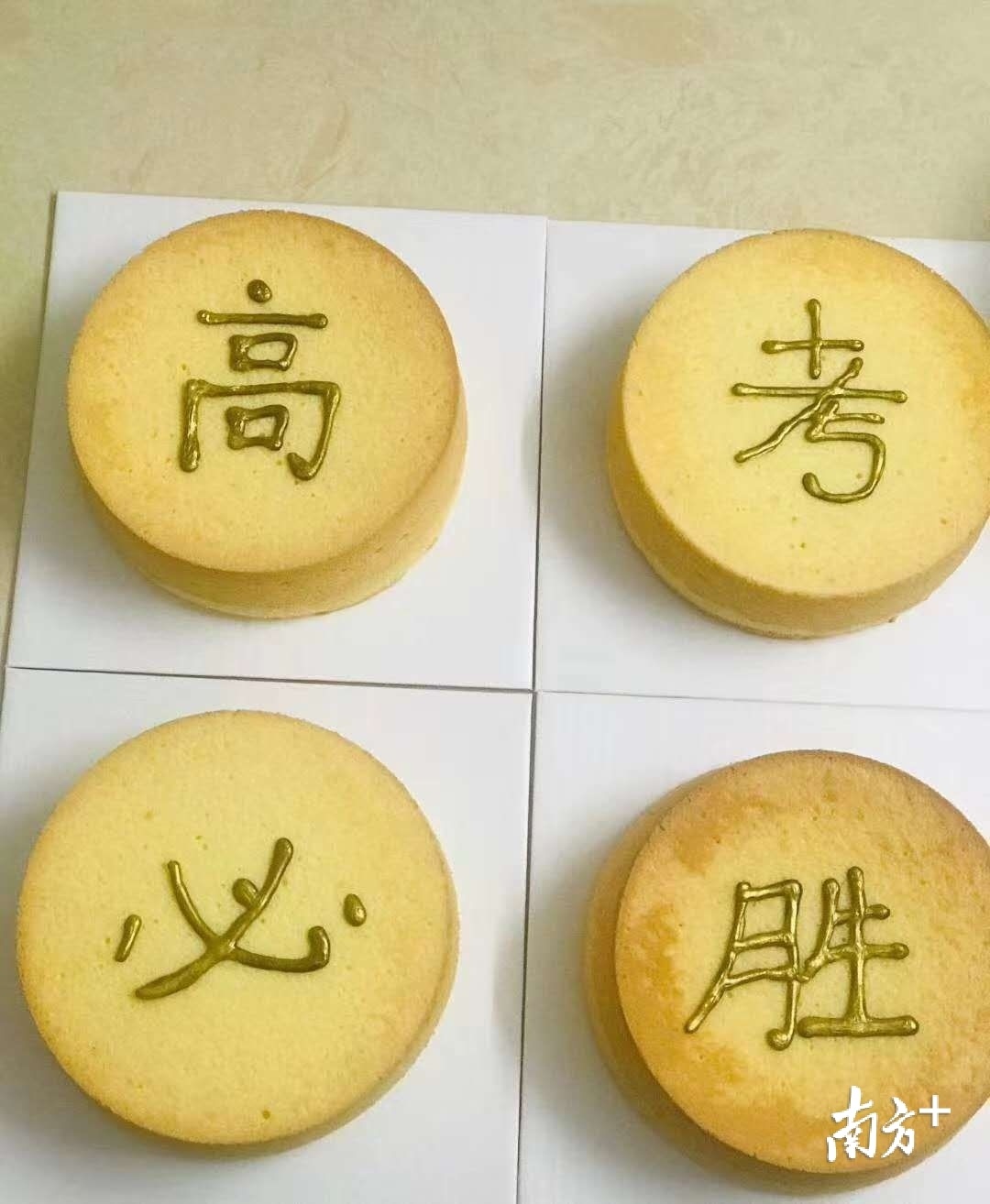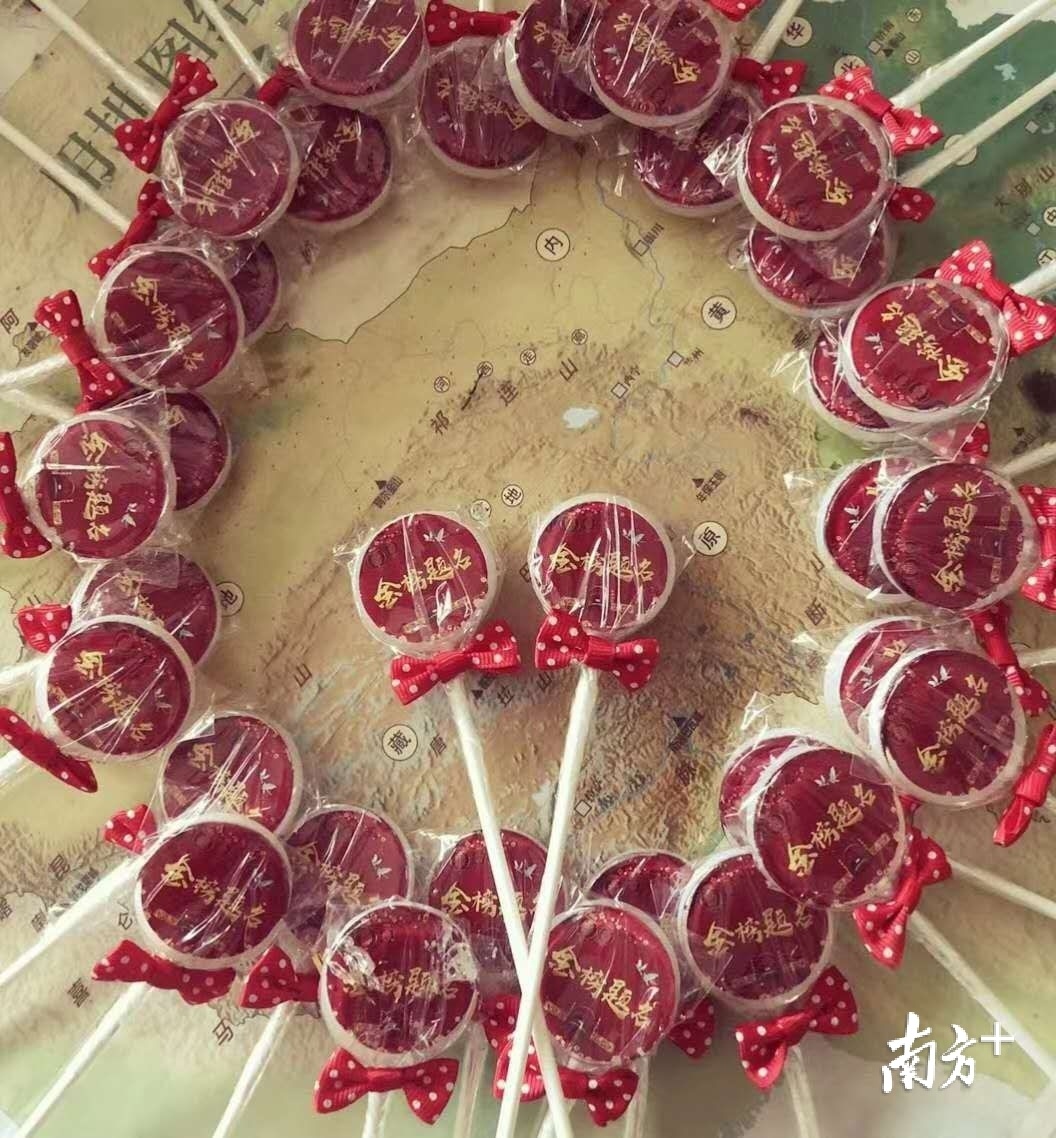 在开考前,三水区华侨中学的老师为学生准备了一系列加油助威的活动,定制了印有金榜题名的棒棒糖、高考必胜的蛋糕等,满满的仪式感为考生营造了轻松的考前环境。