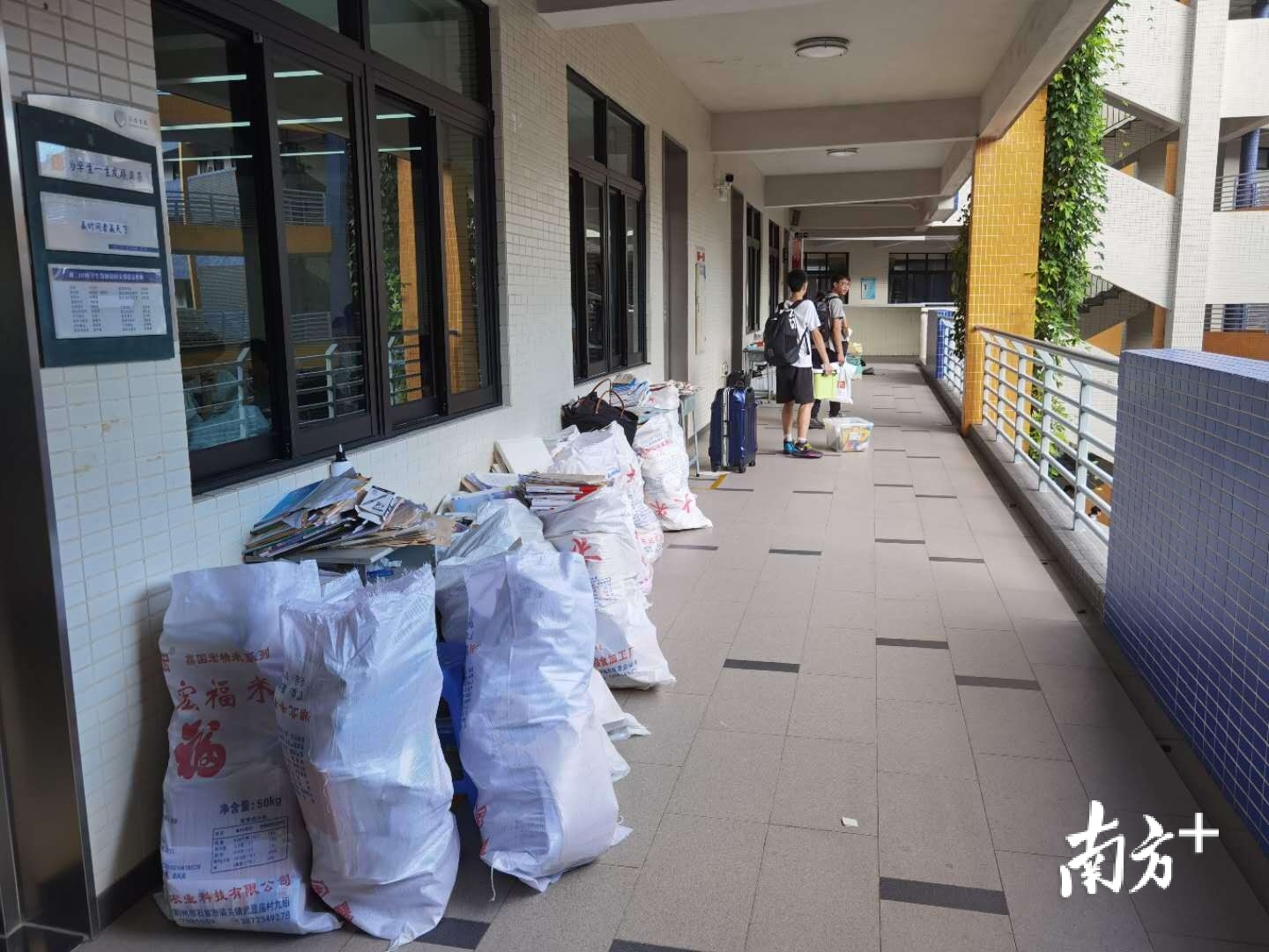 ▲顺德德胜学校教室外的走廊满满的书籍,见证了拼搏的三年。