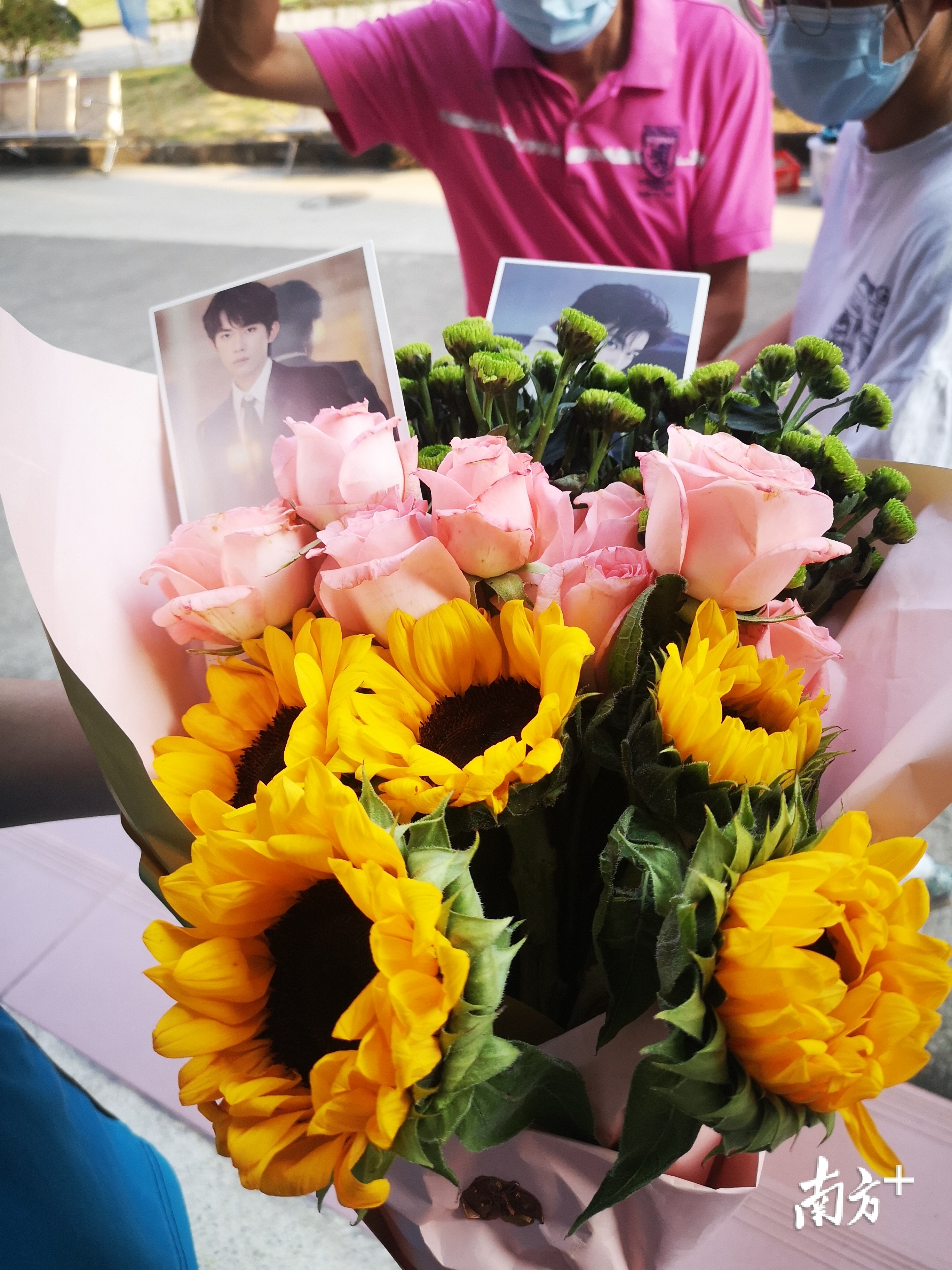 ▲三水中学附中初三(2)班的李晓雯收到姐姐送来的花,上面还有易烊千玺的卡片。李晓雯表示,感觉很暖心,姐姐还特意为自己插上了“爱豆”的图片,非常惊喜。谈及接下来的计划,她表示打算利用假期自学一下高中的知识。“这次中考感觉状态很轻松。”李晓雯说。