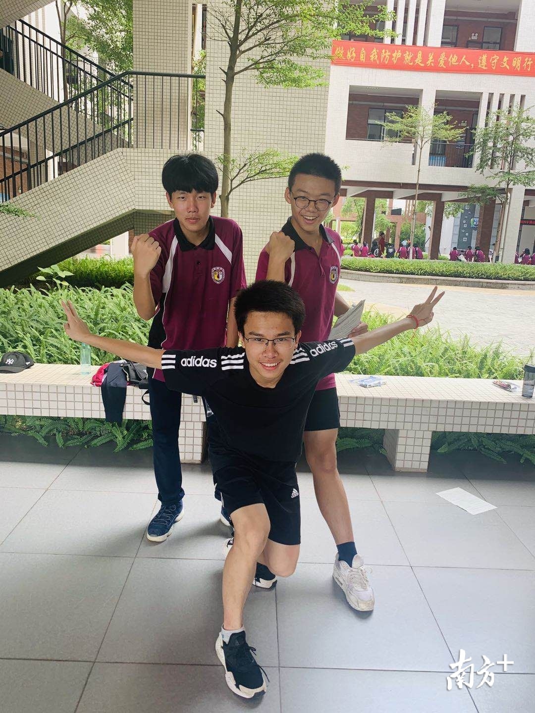 ▲考试结束后,北外附校三水外国语学校的学生们状态轻松,与同学欢乐合影。