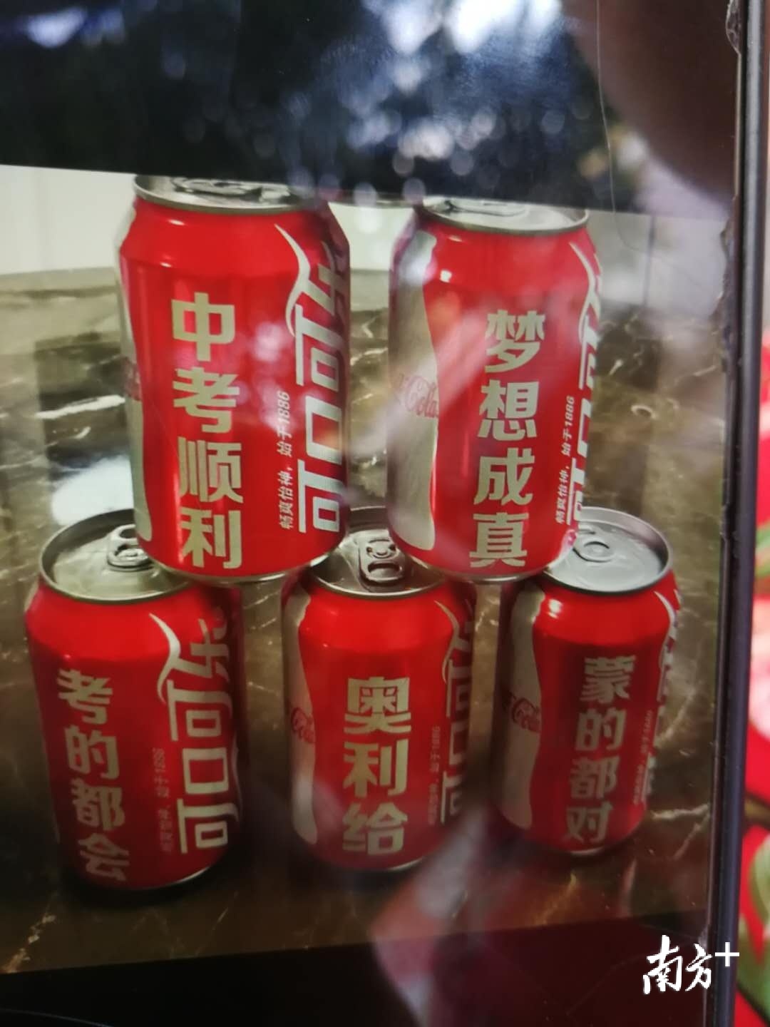 ▲佛山市惠景中学,家长陈女士为迎接儿子,专门准备了必胜口罩,并穿上大红袍。她告诉记者,这样的口罩她一共定制了100多个口罩,送给儿子班上的孩子和老师。在考前,她还用可乐创意为孩子加油打气。