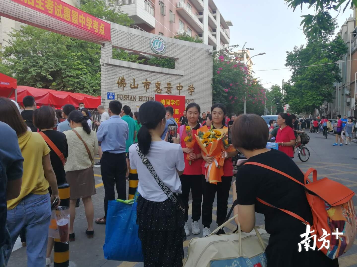 ▲佛山市惠景中学,中考结束后,大家纷纷留念合影,咔嚓一声将学子的青春定格在此刻。