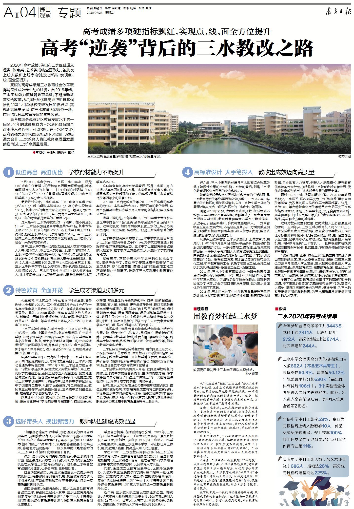 这份沉甸甸的高考成绩单背后,既是三水学子努力拼搏、认真学习的印证,也是三水教师高水平育人能力的硕果和区内学校超强加工能力的体现,更是三水教育综合改革四年来的显著成效。