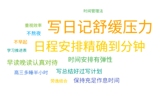 2018年理科屏蔽生王浩宇(石门中学)认为作息不仅对身体健康很重要,对新的一天的学习状态也非常重要。在日程计划方面,他提倡更有弹性的时间安排,做计划的时候可以留一些空余时间。并且,他还角色写总结要比写计划更重要。几乎每次大考后都会总结过去的阶段以及在当次考试中的表现。