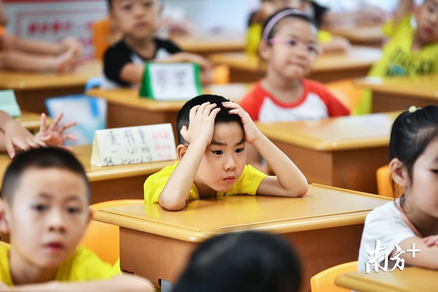 也许是期待新学期的到来,前一晚辗转难眠,一位小朋友在课堂等候时,不禁打了一个长长的哈欠。(戴嘉信 摄)