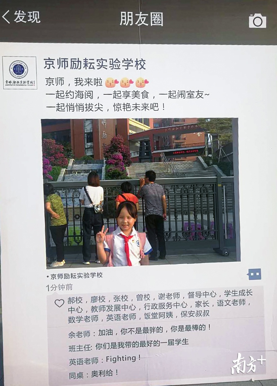 顺德京师励耘实验学校在门口立起了两个大大的朋友圈相框,吸引孩子们打卡留念。