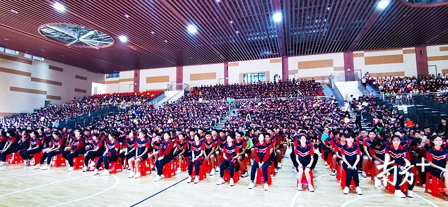 广东外语外贸大学附设佛山外国语学校的开学典礼,共有近5000名师生参与。庞大团结的师生团队,坐满了整个礼堂。