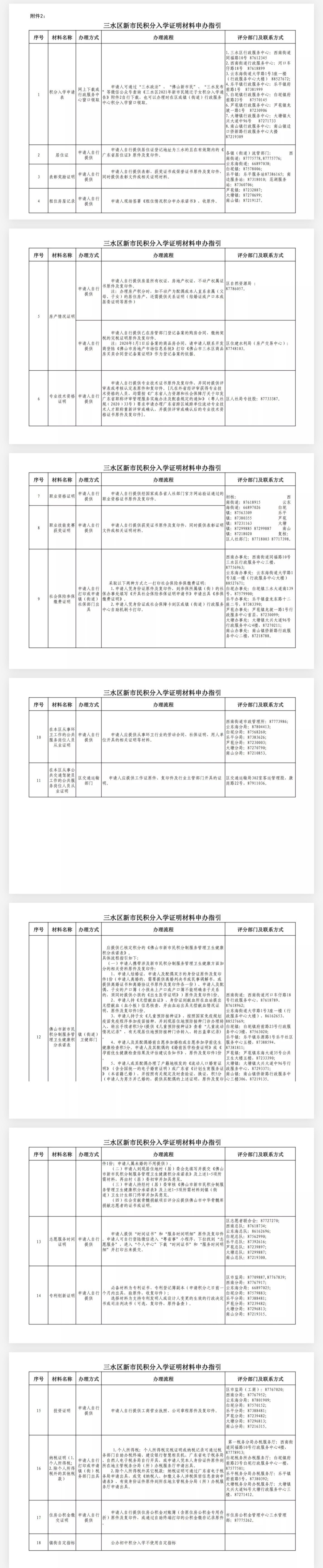 《三水区新市民积分入学证明材料申办指引》文件截图