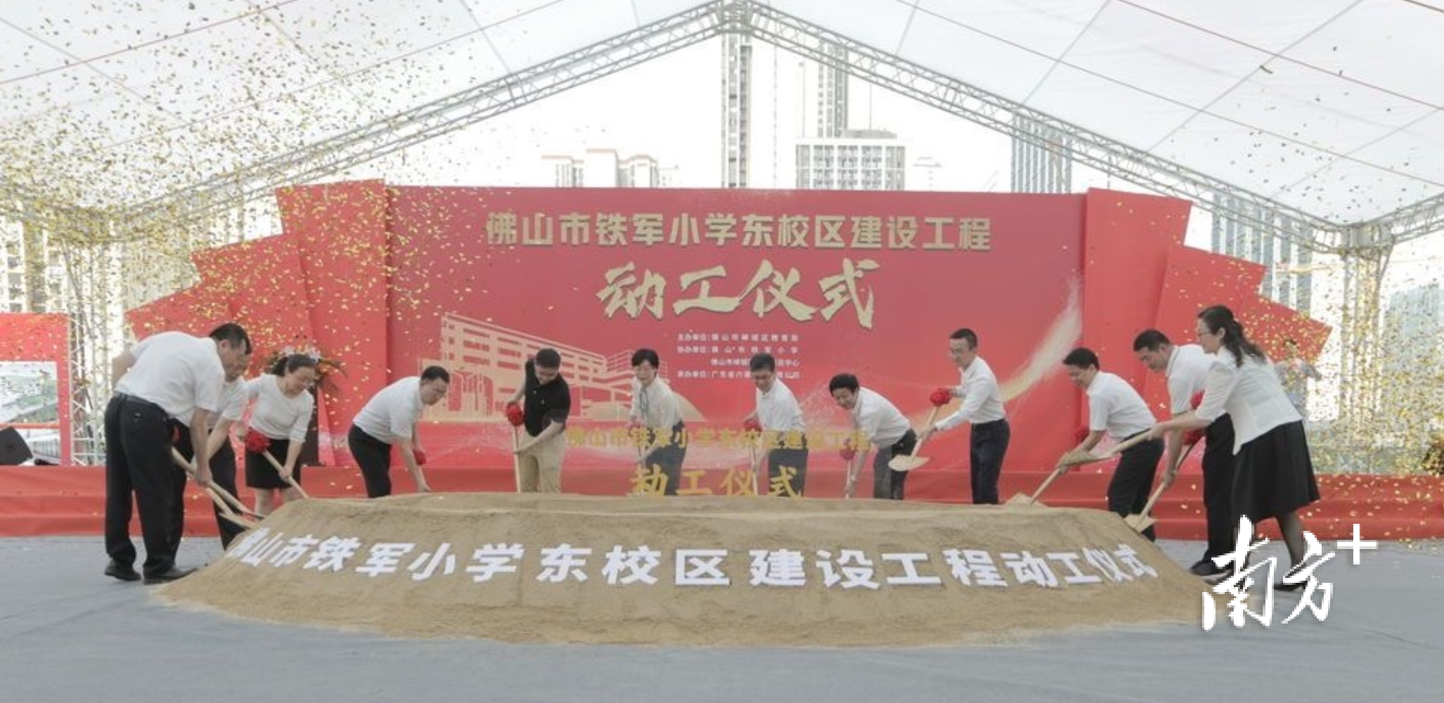 4月29日上午,佛山市铁军小学东校区建设工程项目正式动工。学校位于湖景路西侧、彩虹路北侧,拟建成一所六年制义务教育公办小学。学校占地面积约30亩,总建筑面积约40000平方米,总投资约2.73亿元,设36个教学班,共提供1620个公办学位。学校2023年交付使用后,将进一步丰富该片区优质教育资源配套,更好地满足市民对高品质教育的需求。