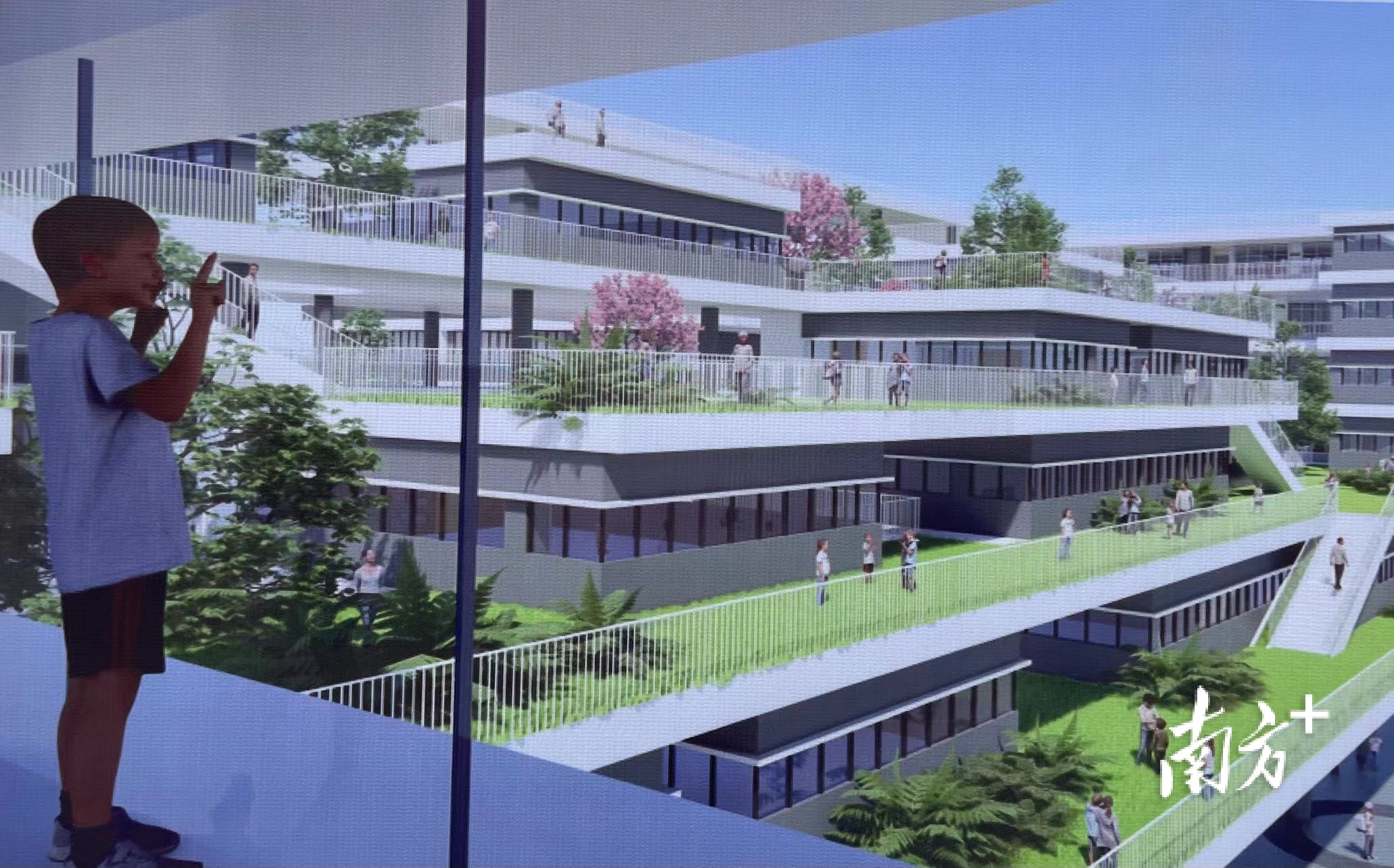 从设计效果图来看,铁军小学东校区的绿地率将达到40%以上,拥有花园式综合教学楼、现代化的功能场室、游泳池、图书馆、篮球场及休闲优雅的校园环境和空间,力争打造一所全新的现代化新样态学校。在建筑样式上,学校将采用梯田式的层叠设计风格,营造主次分明、流线合理、布局科学、视野开阔、四季绿色如茵的校园景观。此外,为了保证孩子上学放学的安全,学校将通过合理的设计布局,将地下车库的空间利用起来,届时,地下接送枢纽将成为一大亮点。