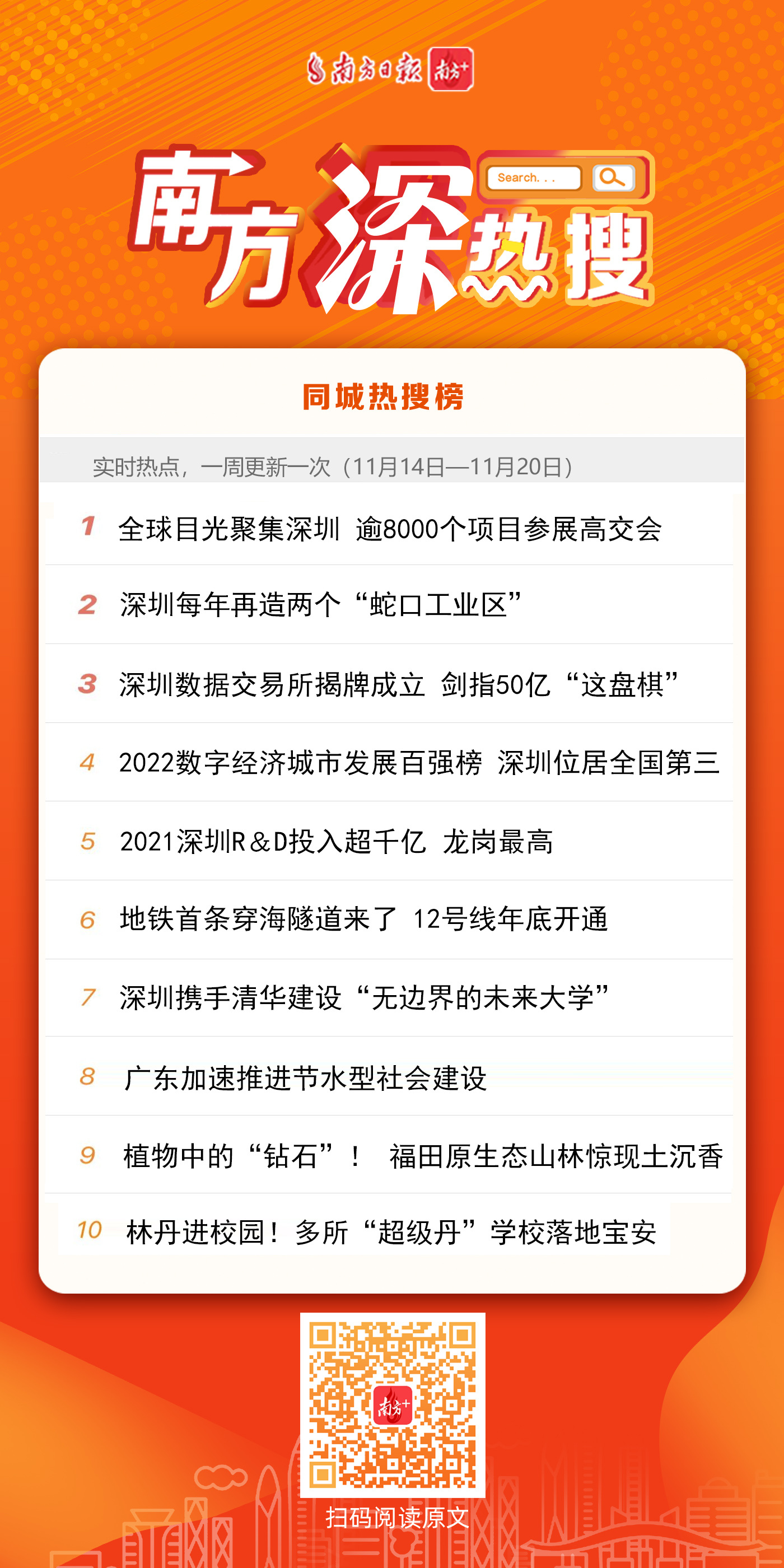 过去的一周,属于深圳的惊喜层出不穷:深圳地铁首条穿海隧道即将亮相,在福田发现植物中的钻石——“土沉香”,“超级丹”林丹走进校园与孩子们同乐,多所“超级丹”羽毛球特色学校落地宝安。