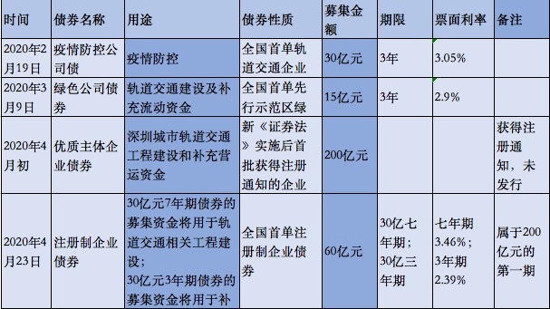 2020年以来,深圳地铁发行已发债三次