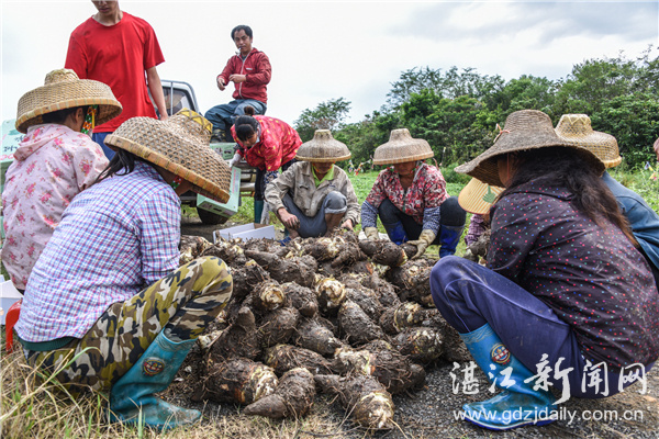 近日,记者从雷州市白沙镇符处村了解到:这里的“扶贫明星产品”——高粉芋头总体上长势良好,已经进入收割采摘季节,田间地头一派丰收的喜悦。