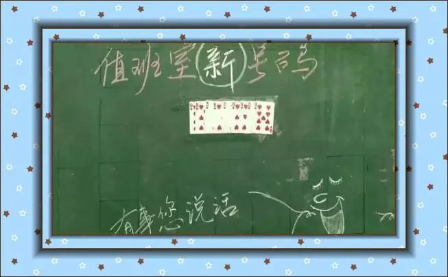 淮阴师范学院的赵阿姨,在小小的黑板报上孜孜不倦地展示自己高速运转的小脑瓜:值班室换了新号码,用红桃同花顺的扑克牌连成一片来通知;