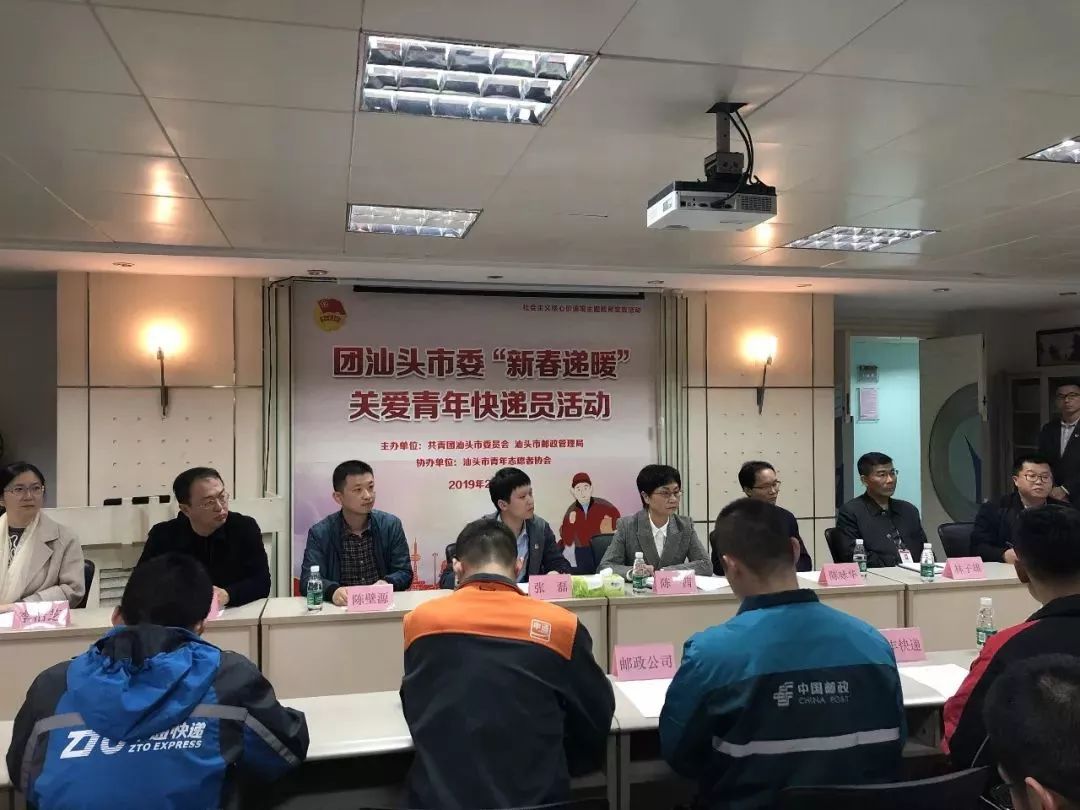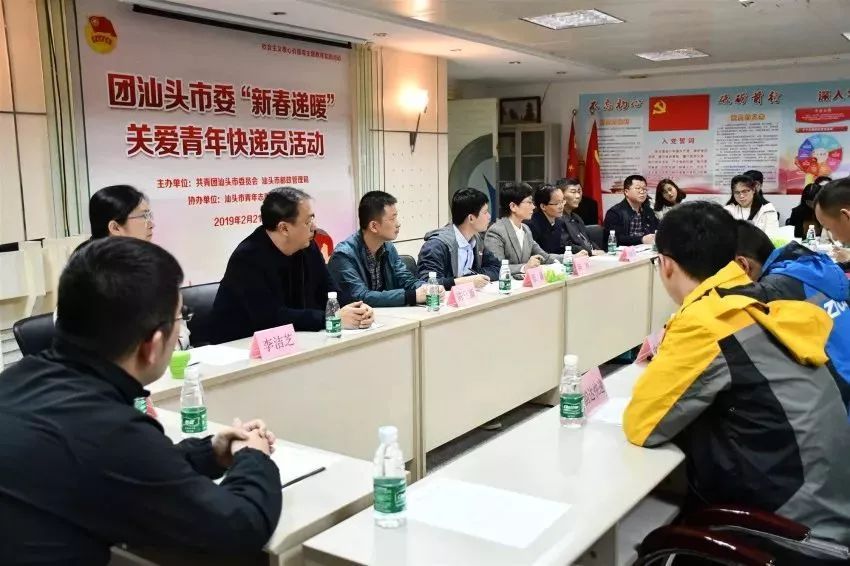 2019年2月21日下午,团市委、市邮政管理局在汕头市青少年活动中心联合开展“新春递暖”关爱青年快递员活动。团市委党组书记、书记张磊同志,市邮管局相关负责人出席活动,部分市人大代表、政协委员、青年快递员代表等约50人参加了活动。