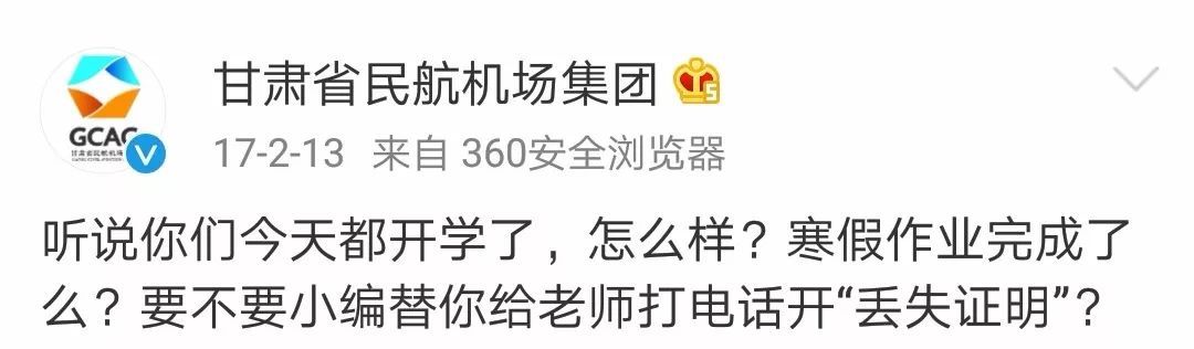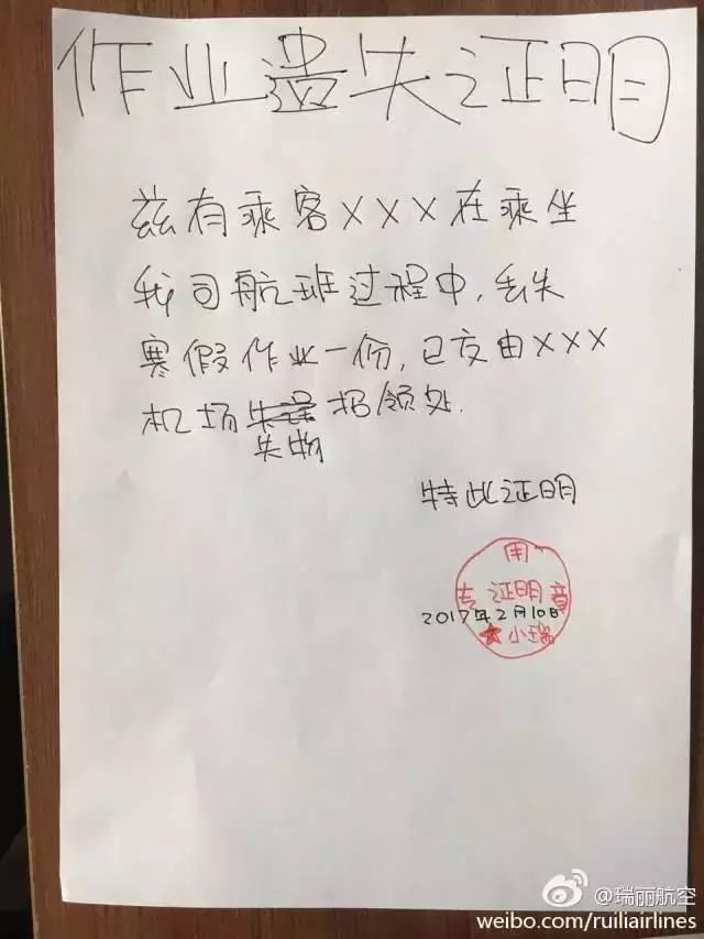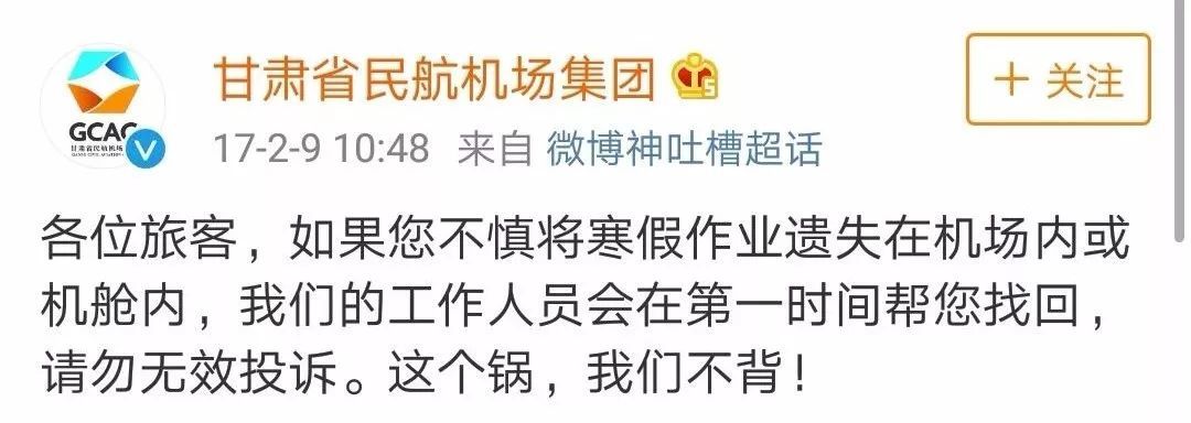去年寒假,针对丢失的作业,各大航空公司还纷纷调皮表态。