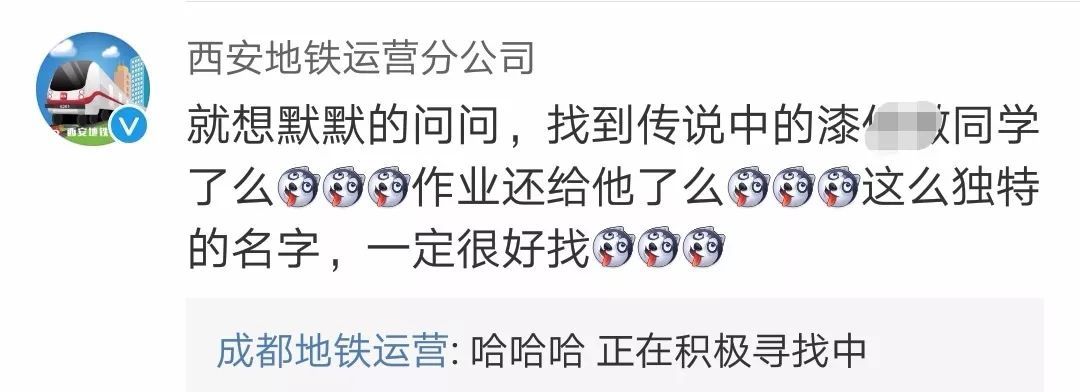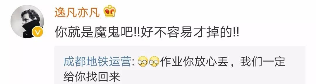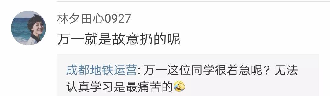 有网友@成都地铁运营:“哈哈哈,你是魔鬼吗?能不能假装没看见