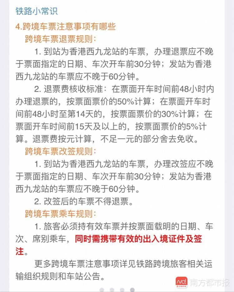 需要注意的是,周小姐今天上午购买香港回广州的高铁票后发现,香港返程高铁票如改签一次后,就不能再选择退票。南都记者咨询12306客服,客服称根据规定,目前广深港高铁确实是改签后不能退票。