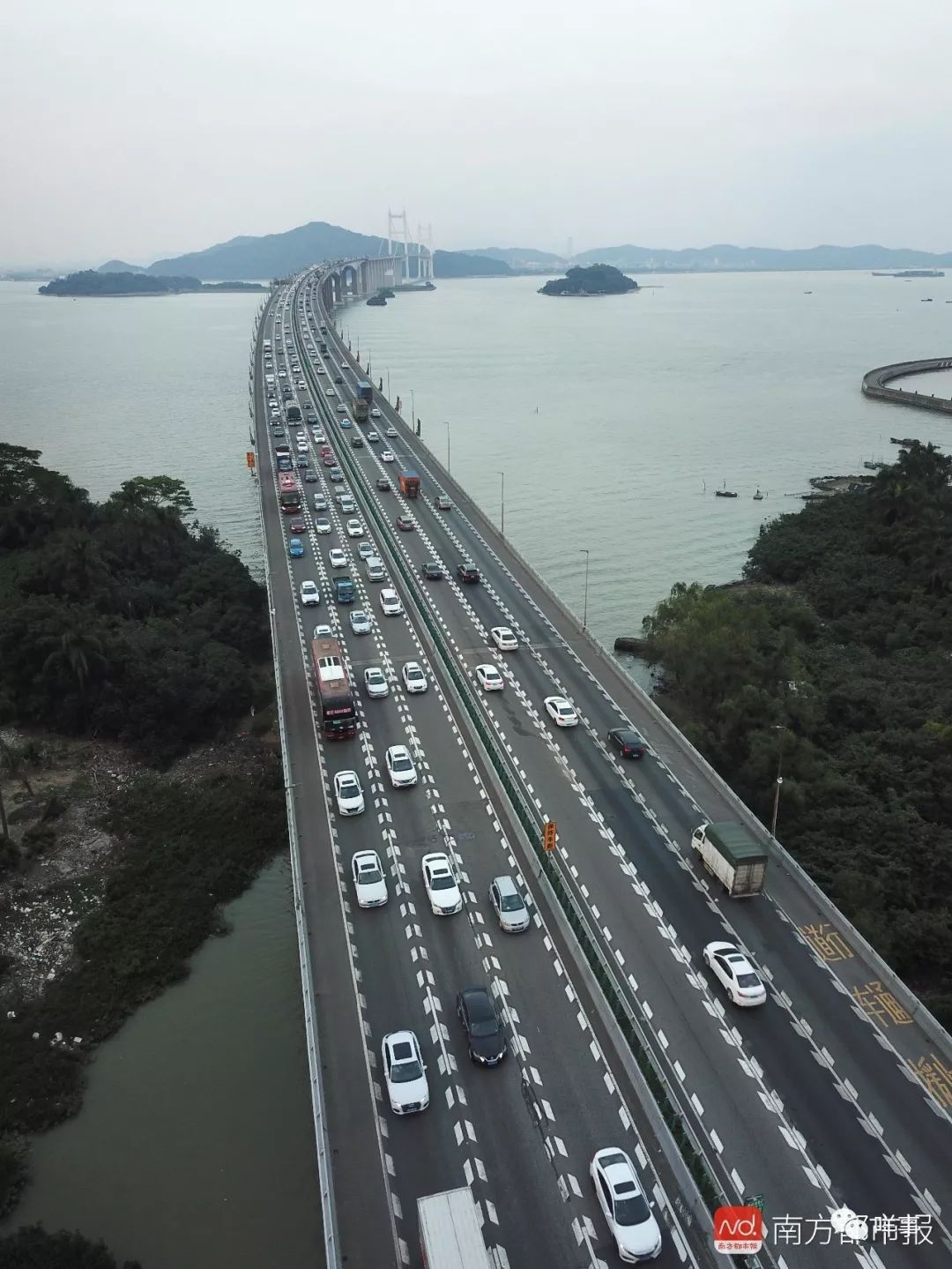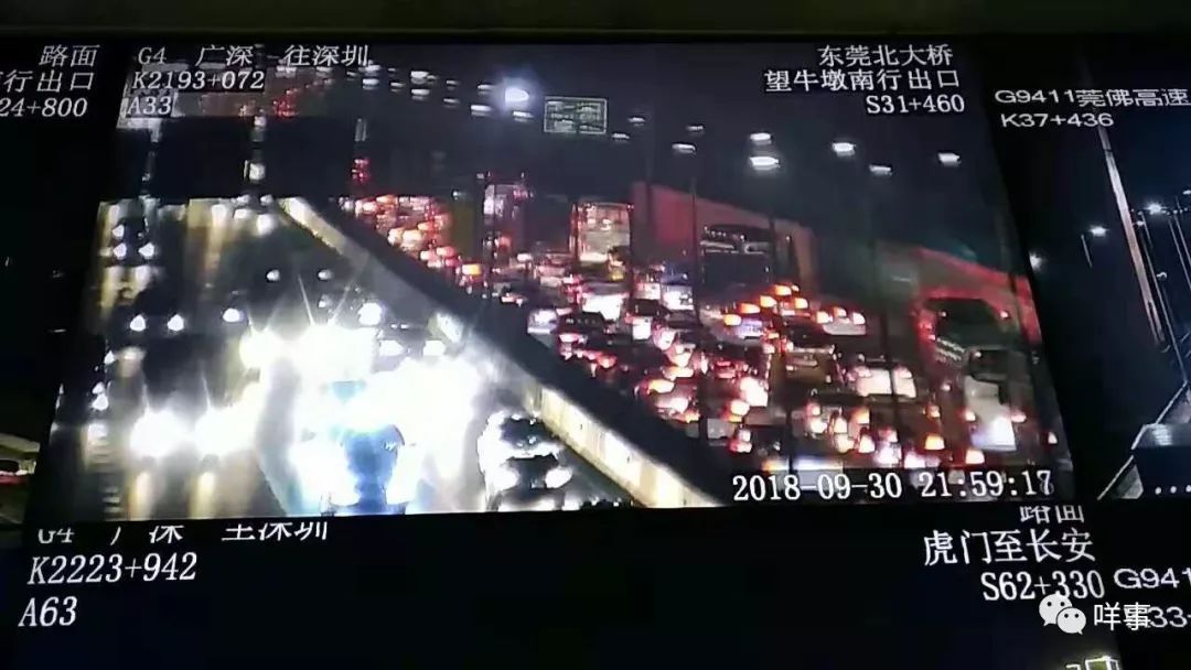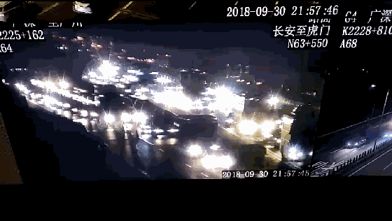 22时00分,莞佛高速虎门大桥西行K36因车流量大慢行8公里,已开启灯控管制。