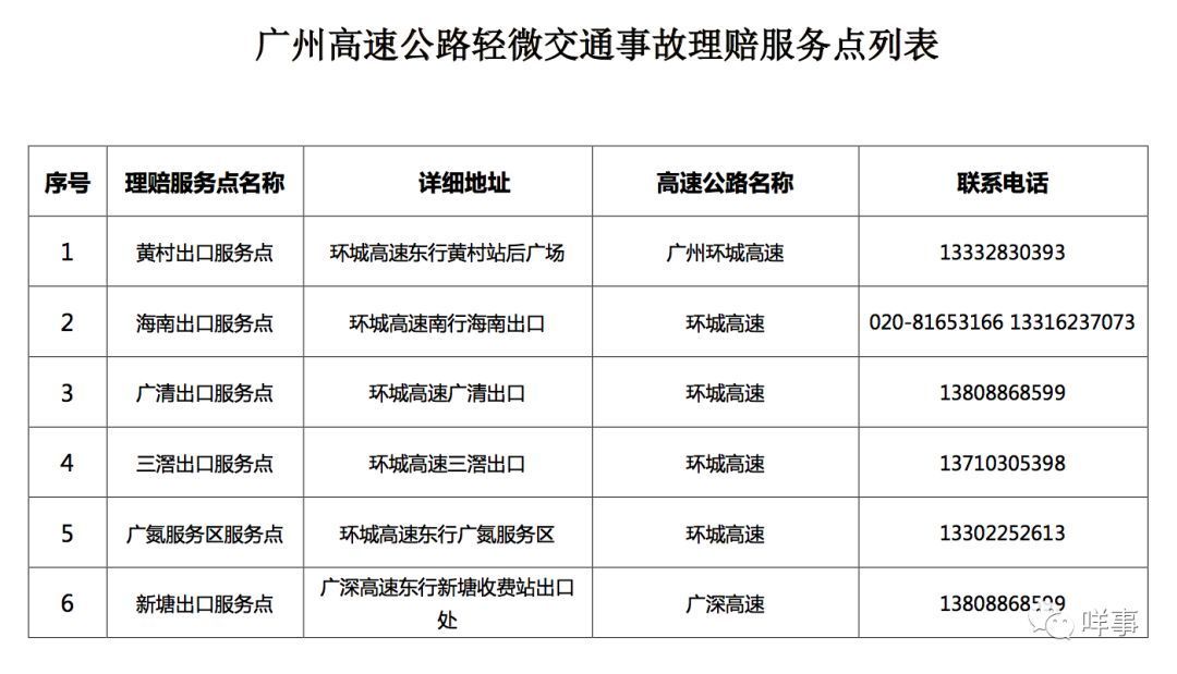 目前全市高速共有黄村出口服务点、海南出口服务点等16个轻微交通事故理赔服务点。