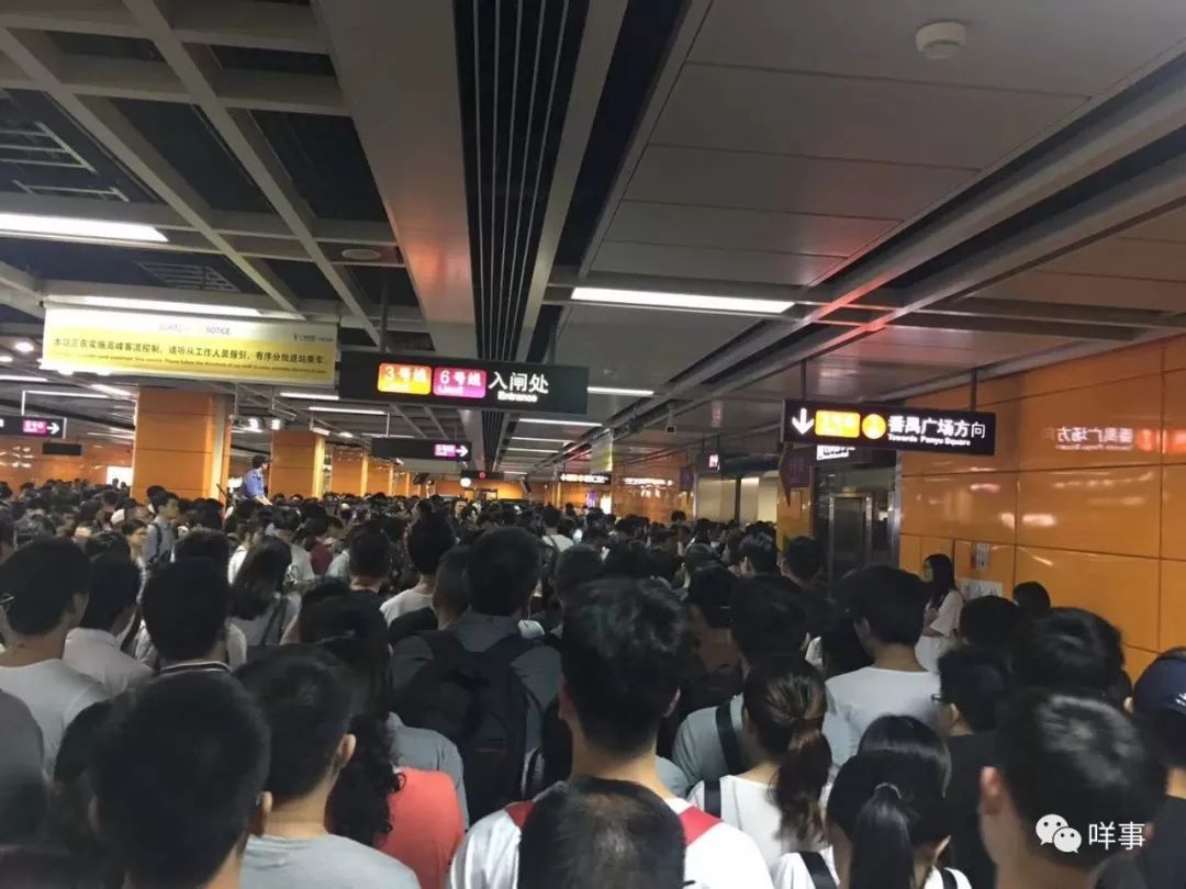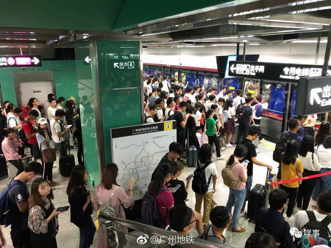 下午六点,地铁站珠江新城、万胜围、西场、西村、中山八、小北、淘金、动物园、五羊邨、猎德、潭村、科韵路、东圃、三溪、大沙地、文冲、大学城北、新造、石碁等站点采取限流措施。