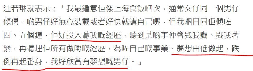 至于江若琳在那次吃饭中,也被对方为梦想努力的模样所吸引,两人就此暗生情愫。