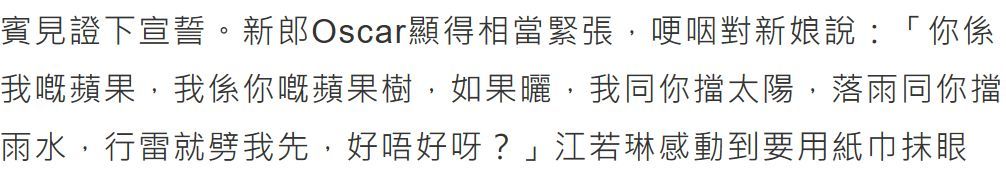他表示江若琳是他的苹果,自己则是她的苹果树,日晒雨淋也有他保护。