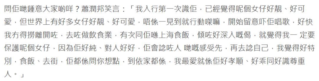 当时,萧润邦已经很欣赏对方的单纯,并且指出刚出道时已经有留意对方。