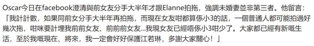 萧润邦对此就表示,两人早于大半年前就分手,澄清江若琳的小三传闻。